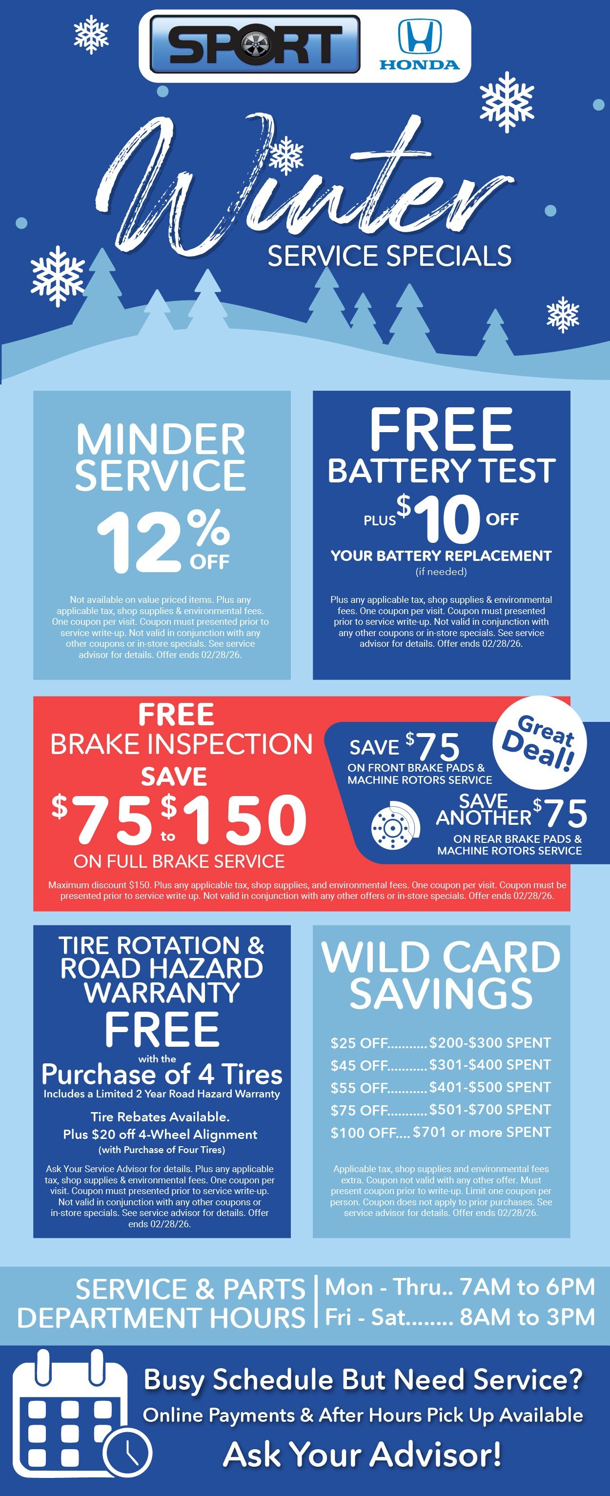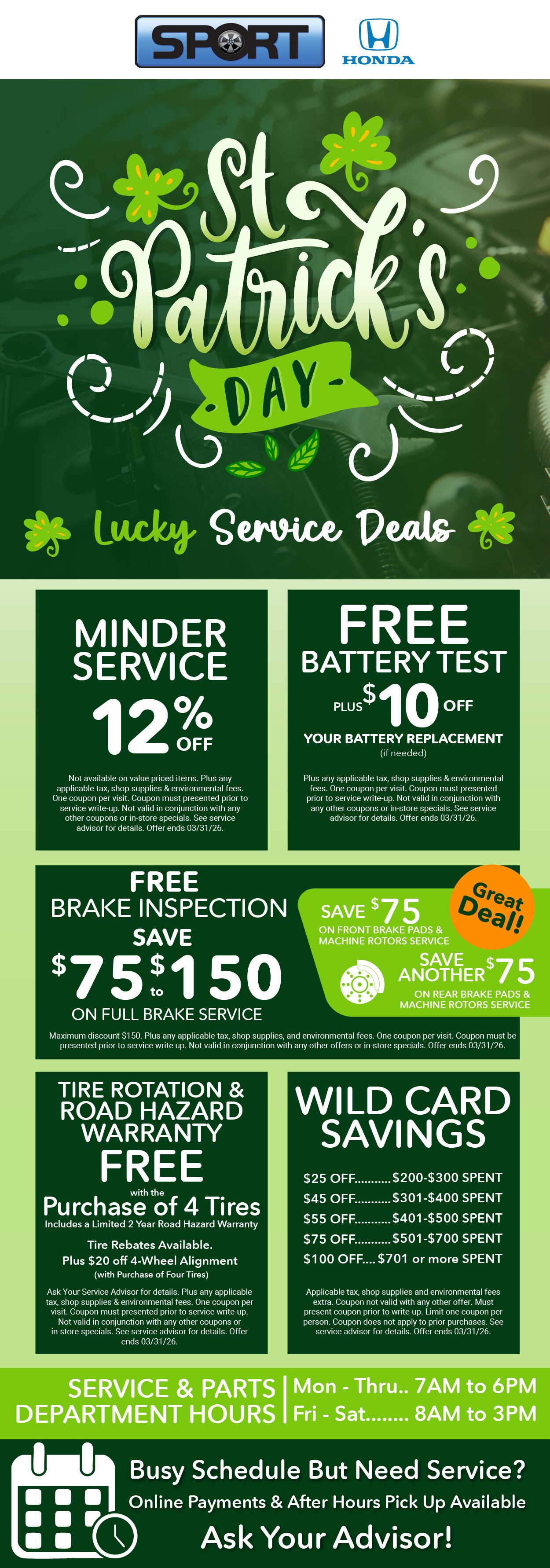 Keep some cash in your pocket with these money saving service offers from Sport Honda.